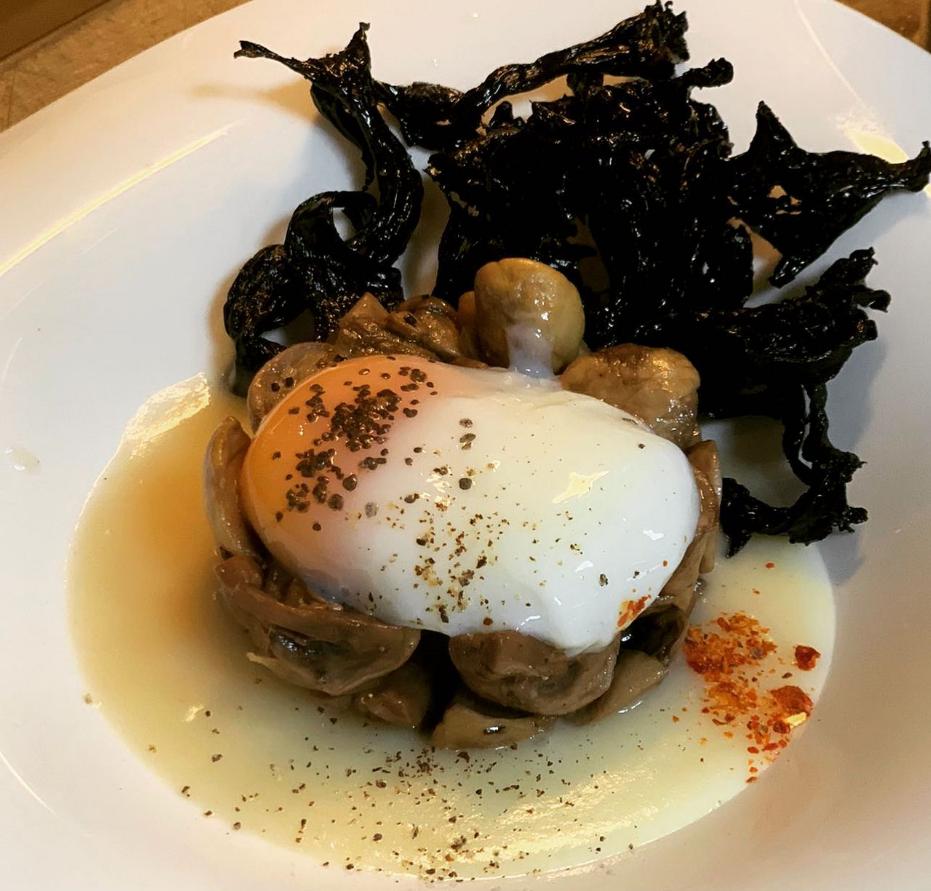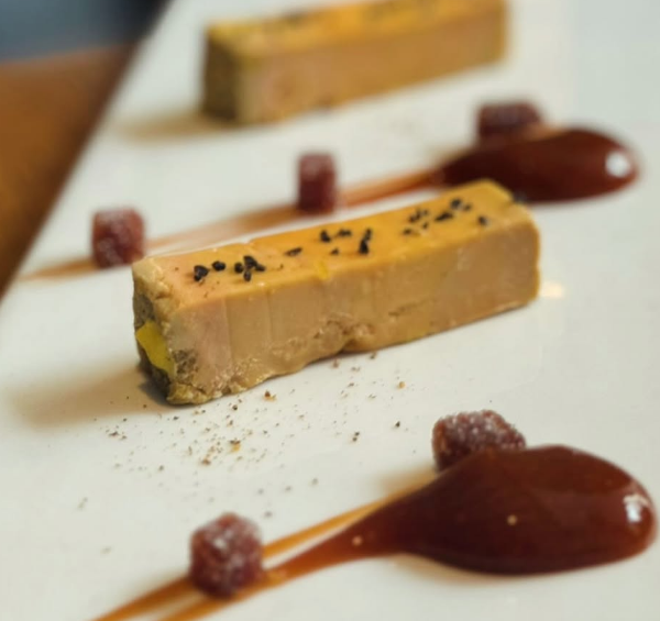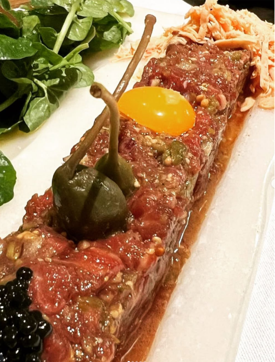 solomillo de vaca, trufa, huevo, foie-gras y vegetales